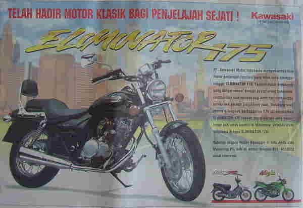 | ★Eliminator 175 誕生!!★ 風貌としては、以前Masato氏から譲りうけ、現在AYA氏の手元にあるEliminator 250似ている。マフラーも懐かしい。ただし、タコメーターはないようである。ハンドルはフラットタイプである。私としては、YUKI氏が所有している250VのようなVツインエンジン なにわともあれ、国産バイクの主流がカブタイプであるこの国では、新鮮な印象を受ける。こちらの金持ちライダーはハーレーにまたがっているので、彼らの目には子供騙し的なバイクに映るであろうが、これを切っ掛けとして、排気量の大きいEliminatorも国産でつくって欲しいと期待するのである。 関連情報として、現在ハーレーは輸入車しかないが、近々ノックダウンで現地生産することが計画されているらしく、そうなると、現在よりかなり安い値段で市場に供給されるとのこと。しかし、それでもむちゃくちゃ高いです。この国のバイク・車は・・・ ★新聞記事より(インドネシア日刊紙「コンパス」2000年8月15日付け★ 「ナンバープレートを使って愛情を刻み込む」 自分の車に特別なナンバープレートをつけたい思う理由は千差万別である。 愛する人、例えば妻、夫、婚約者や子供の名前を永遠のものとするためという理由もある。 自分の名前を刻み込んで、世間の人がその車の所有者が誰であるかということをわかるようにすることもできる。 例えば、インドネシア人ならだれでも知っているサッカーのプレイヤーであった今はなきIdris Sahidiは、かつて「B10LA」というナンバープレートを所有していた。このプレートは「Biola」と読むことができよう。 他の例では、AB Three(WIDI、NOLA、LUSYの3人組の少女歌手グループ)場合、WIDIは「AB 3 WD」、NOLAは「AB 3 NA」、LUSYはグループ脱退前に「AB 3 LS」というナンバープレートをつけていた。 次はちょっとした騒ぎになったケースである。それは「B 1 MA」というナンバープレートのケースなのであるが、これは「BIMA」と読むことができるのであるが、あたかもBimantoroインドネシア警察副長官の名前を示したものであると考えられた。しかし、このプレートは他の人によって所有されているということがわかり、問題となった。しかし、警察は同じナンバーのプレートをもう1枚発行した。それゆえ「B 1 MA」というナンバーは2つ存在することになった。警察というものは、こういうものである。 ナンバープレートというものはは、互いに力関係を競うためのものであることもある。特に、スハルト政権時代、生活していくためには、金と権力が必要であった。ナンバープレートはまさにそのことを表現するものであった。 例えば、政府関係者の車のプレートにつけられる1という数字は、政府高官用の数字であり、例えば州知事用の数字である。一般人が1という数字を手に入れることができたら、あたかも州知事と同じ位になった気分になり、権力を持っている気分になる。 その他には、信仰や風水に関係する特別な数字を狙う人たちもいる。中華系の人たちにとって、例えば、8や9という数字は幸運をもたらすものとして考えられている。それゆえ、「袖の下」を使ってそれら特別の数字を手に入れようとする。1桁の数字を得るための金を支払うことができない人は、4桁の数字でなりたっているものでも問題はないのである。例えば、「B 8888」(下2桁はどんな数字でもよい)でも良いのである。ナンバープレートの数字を全部足して、結果が8になるようにする人もいる。 通常、「1」を手に入れることは困難である。高価なだけではなく、「1」という数字は権力への道筋を持っている人たちのための特別なものである。それゆえ、「二番目の人」になろうとして、2〜9までの間の1桁の数字を得て満足する人もいる。10から99までの2桁の数字を欲しがる人もいるので、これらの数字を得ることも困難である。 スハルト政権時代、特別なナンバープレートをつけた車は、人々に忌み嫌われ、警察も恐れをなしていた。そのような特別車が交通規則を違反した際に、警察が取締りを行なわない、というケースが頻繁にあった。それゆえ、その時代には著名人、金持ち、権力に近い人々のみが特別なナンバーを手に入れることができたのであった。現在でも、以前のようにひどくはないが、そのような傾向が以前として見られる。軍のナンバープレートも同じような「運命」である。かつては、軍の車に火をつけるような猛者はいなかった。それどころか、軍の車に接触されたりぶつけられて死傷した場合でも、そのことについて訴える勇気のある人もいなかった。 1桁や2桁のナンバーを手に入れることのできない一般庶民は、数字の上1桁だけを目立つように、下3桁の数字を黒く塗りつぶしてプレートをカスタマイズしてしまうこともよくある(Horipa注:ナンバープレートの数字は白色である)。例えば「B 1523...」の5、2、3の数字を黒で塗りつぶして、あたかも1だけのように見せかけたりするのである。このような状況は首都の目抜き